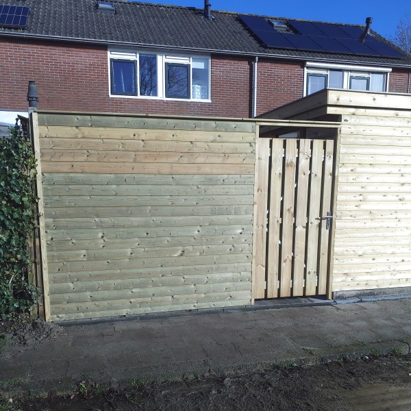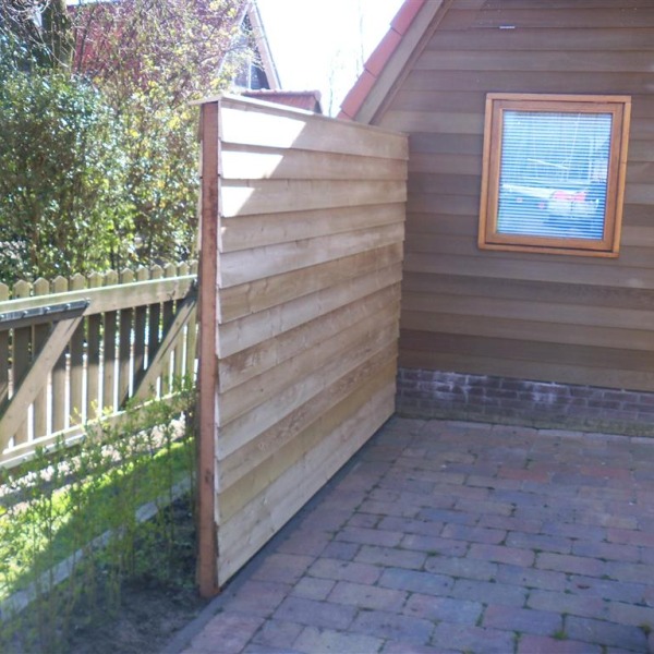 Wij kunnen op diverse manieren voor u een schutting bouwen; plank om plank, of de schutting meteen doortrekken in de stijl van uw schuur of overkapping