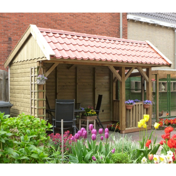 Een overkapping in het model kapschuur (met een puntdak) is zowel in een traditionele, alsook in een moderne uitvoering als maatwerk te bestellen. De kapschuur past daarmee in iedere tuin. U zit altijd uit de volle zon en uit de regen. Dit model is zowel met als zonder schuurtje te bestellen en is verkrijgbaar in diverse maten en uitvoeringen.