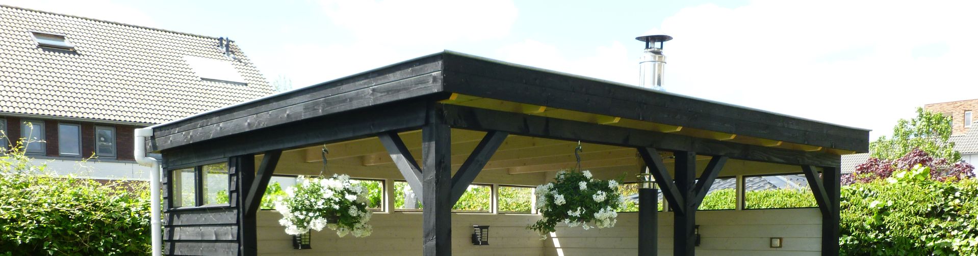 U kunt uw eigen overkapping met plat dak – met of zonder combinatie met een opbergschuur – ontwerpen door een keuze te maken uit verschillende mogelijkheden. Zo kunt u de overkapping strak en modern laten uitvoeren, of juist een robuust uiterlijk meegeven door het gebruik van dikkere douglas palen en een gepotdekseld zweeds rabat. Uw tuin, uw overkapping, uw keuzes.