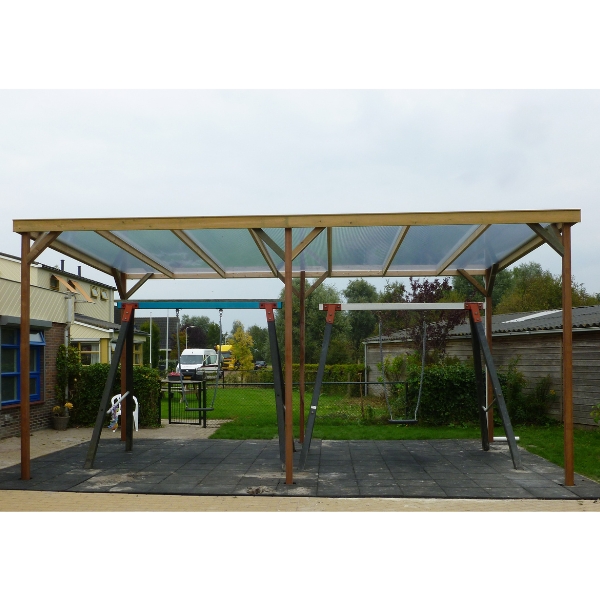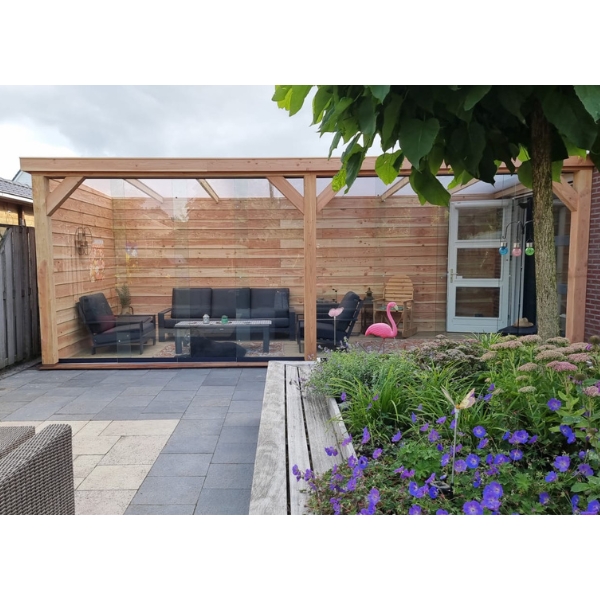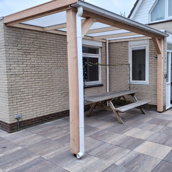 U kunt uw eigen overkapping met polycarbonaat dak ontwerpen door een keuze te maken uit verschillende mogelijkheden. Zo kunt u de overkapping strak en modern laten uitvoeren, of juist een robuust uiterlijk meegeven door het gebruik van dikkere douglas palen en een gepotdekseld zweeds rabat. Uw tuin, uw overkapping, uw keuzes.