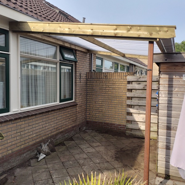 Een polycarbonaat overkapping is de perfecte keuze voor een lichtdoorlatende en duurzame toevoeging aan uw tuin of terras. Deze overkapping kan perfect tegen uw huis worden gebouwd, waardoor u optimaal profiteert van het natuurlijke licht terwijl u toch beschermd bent tegen regen en zon. Verkrijgbaar in diverse uitvoeringen en maten. De polycarbonaat platen zijn zowel in het doorzichtig als opaal verkrijgbaar.